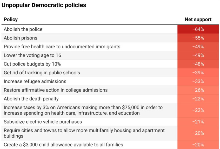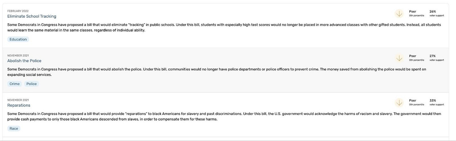 This echoes findings from David Shor, Head of Data Science at Blue Rose Research, who has long flagged removing advanced classes as “literally the single most unpopular thing Democrats can talk about.”